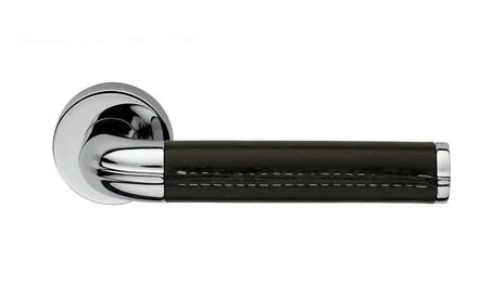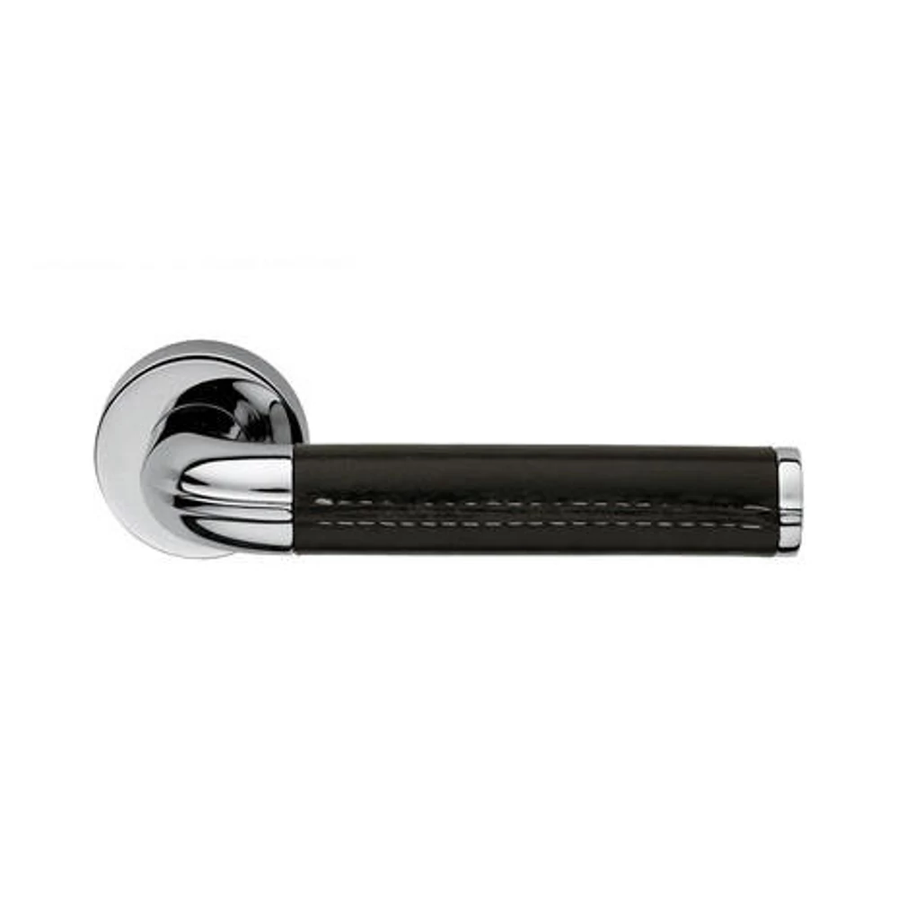 DND Havana fényes króm / fekete bőr körrozettás kilincsgarnitúra