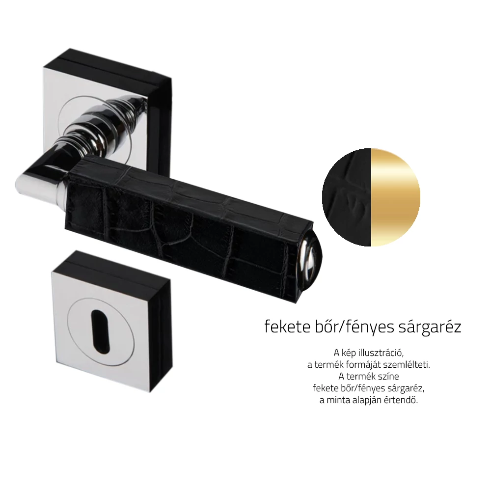 Glass Design CUBE Leather fekete bőr / fényes sárgaréz négyzetrozettás kilincsgarnitúra CUBELBKF1OP9
