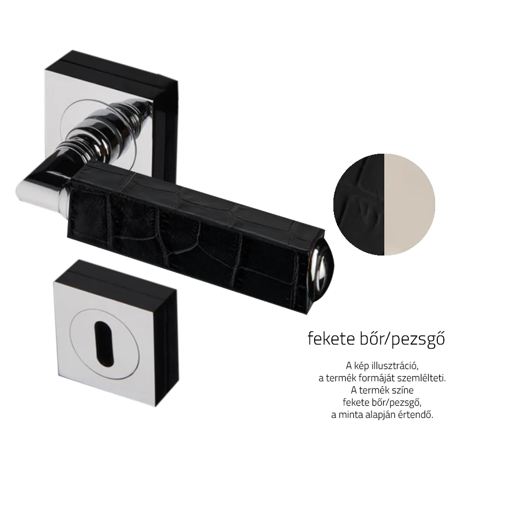 Glass Design CUBE Leather fekete bőr / pezsgő négyzetrozettás kilincsgarnitúra CUBELBK-F15