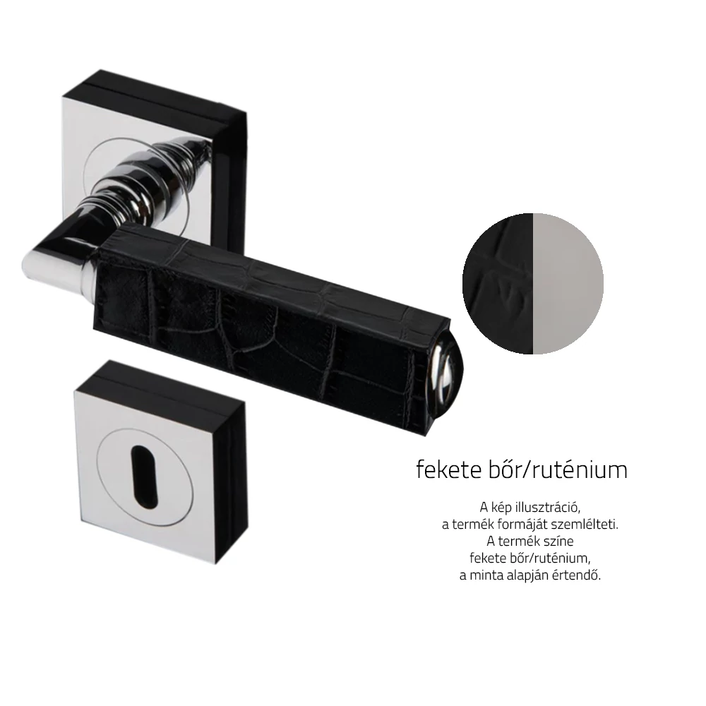 Glass Design CUBE Leather fekete bőr / ruténium négyzetrozettás kilincsgarnitúra CUBELBK-F14