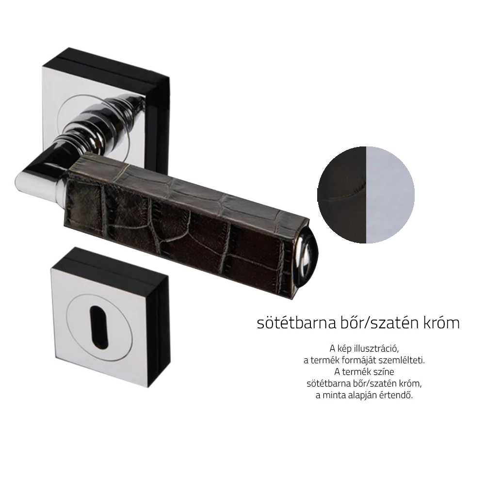 Glass Design CUBE Leather sötétbarna bőr / szatén króm négyzetrozettás kilincsgarnitúra CUBELBRF8OP9