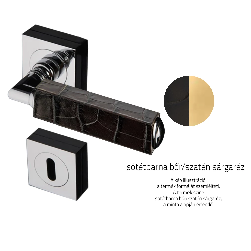 Glass Design CUBE Leather sötétbarna bőr / szatén sárgaréz négyzetrozettás kilincsgarnitúra CUBELBR-F11