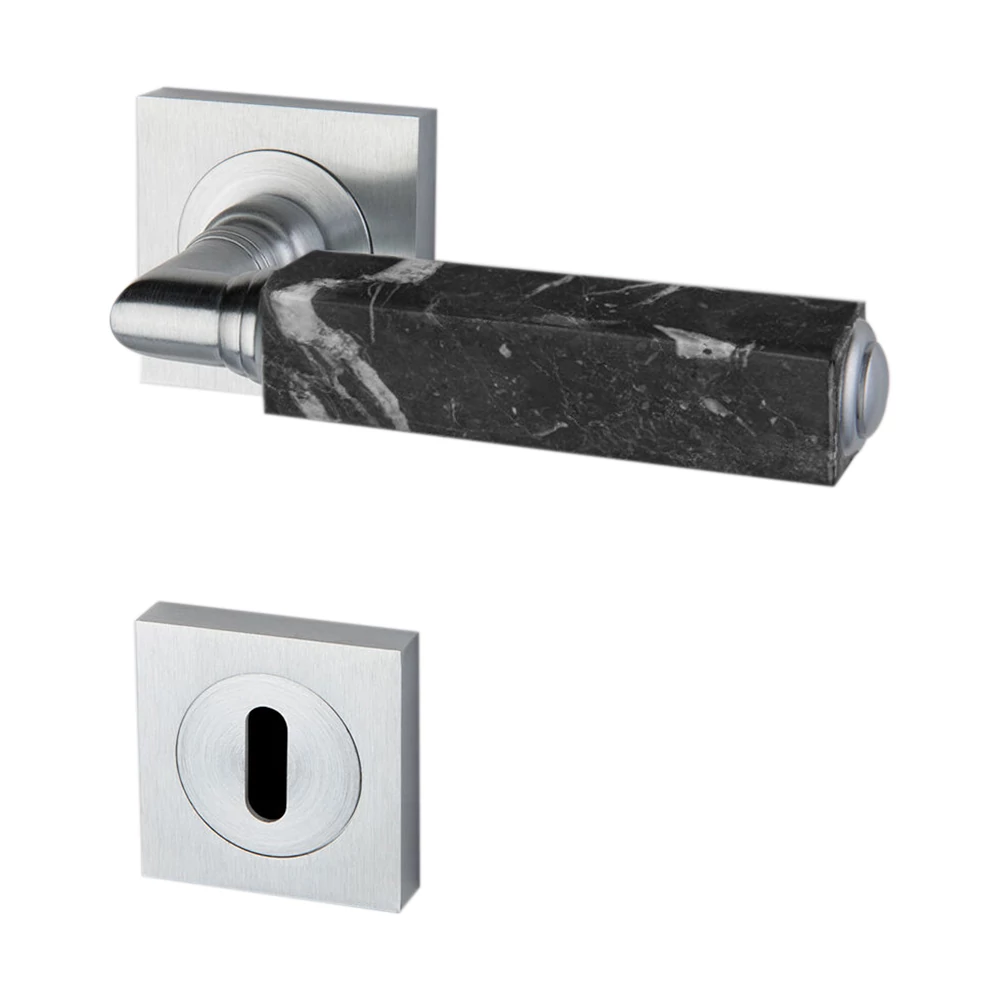 Glass Design CUBE Marble fekete márvány / fényes króm négyzetrozettás kilincsgarnitúra CUBEMRBF4OP9