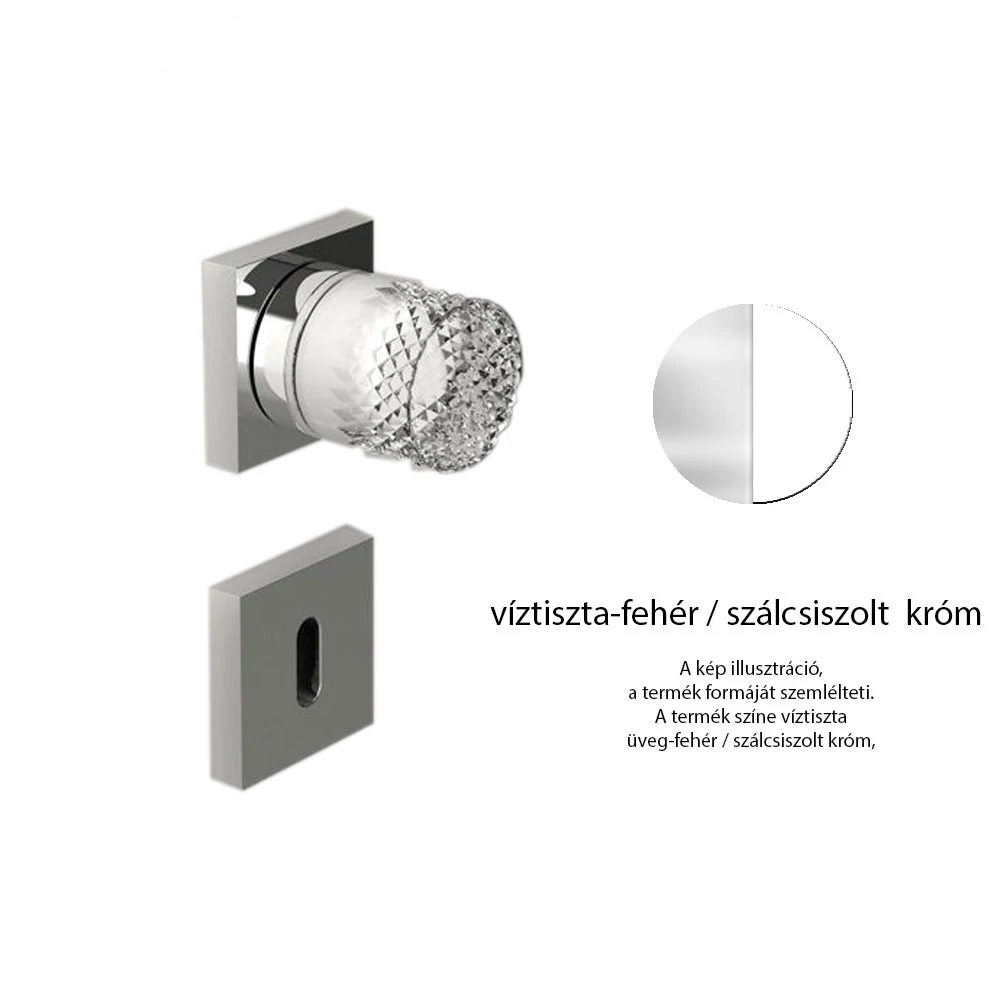 Glass Design Princess Home víztiszta üveg-fehér / szálcsiszolt króm négyzetrozettás gomb kilincsgarnitúra PRINCESSHBOF8OP9