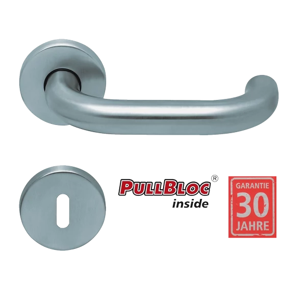 2 db kilincsszár, 1 db kilincstengely, kör alakú rozetták, PullBloc alaplapok, rögzítéshez szükséges csavarok, a kilincsszár megfogatásához szükséges hernyócsavarok és imbuszkulcs.