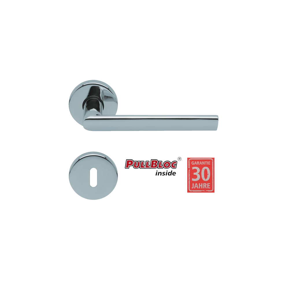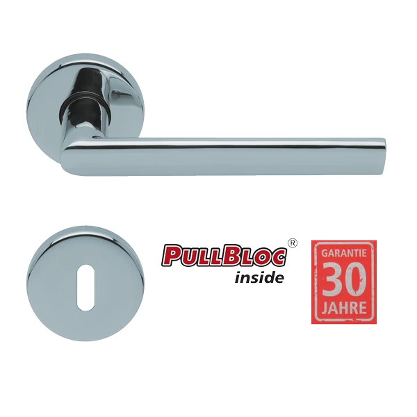 2 db kilincsszár, 1 db kilincstengely, kör alakú rozetták, PullBloc alaplapok, rögzítéshez szükséges csavarok, a kilincsszár megfogatásához szükséges hernyócsavarok és imbuszkulcs.