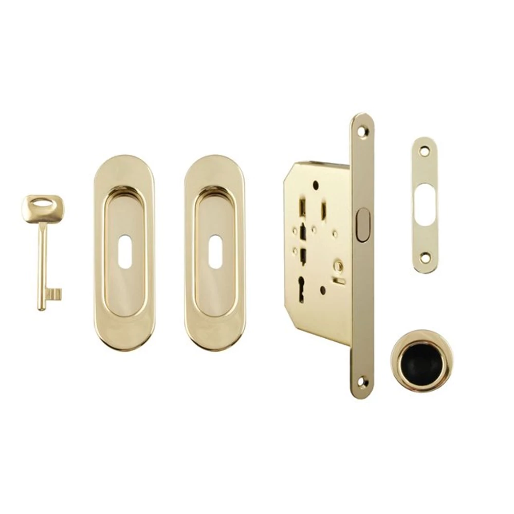 Made in Italy fényes réz ovál tolóajtó BB zár szett húzókával