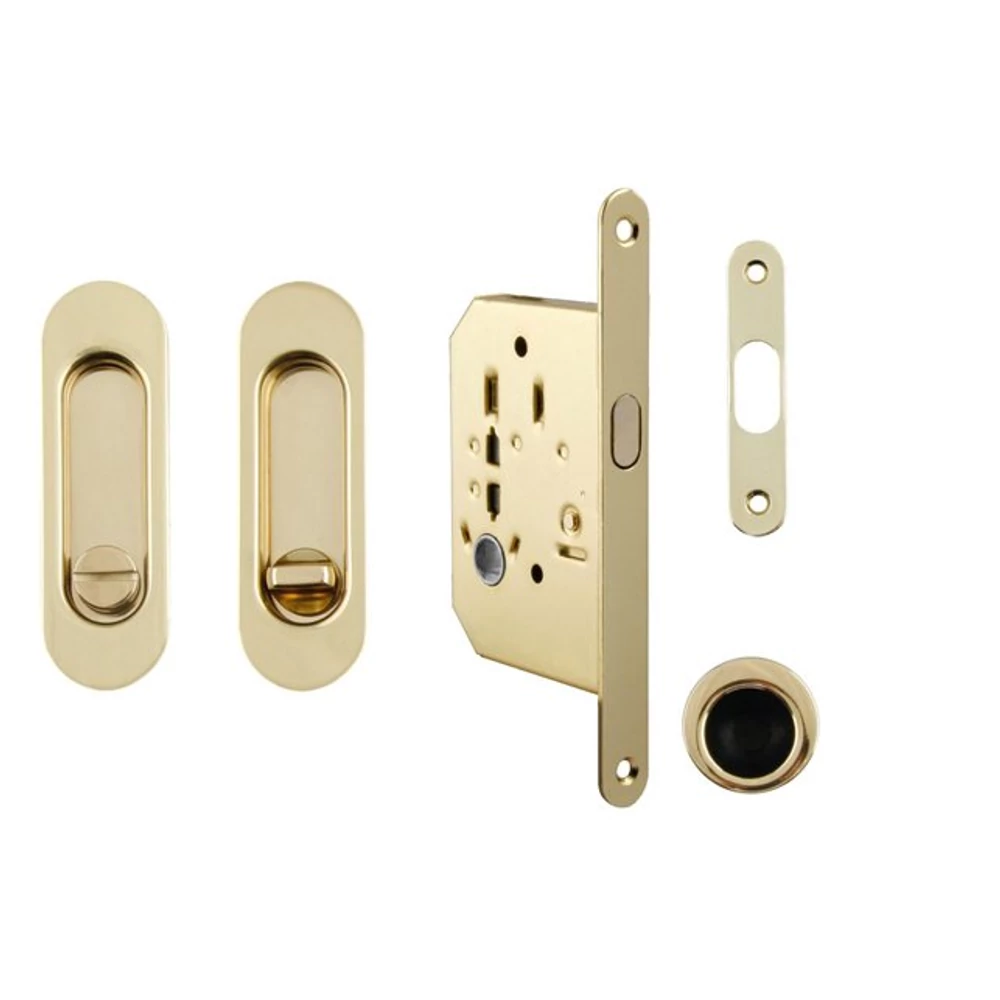 Made in Italy fényes réz ovál tolóajtó WC zár szett húzókával