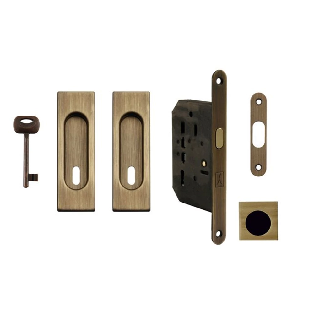 Made in Italy súrolt bronz négyzetes tolóajtó BB/D zár szett húzókával