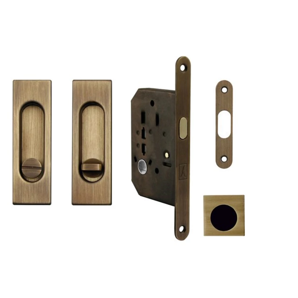 Made in Italy súrolt bronz négyzetes tolóajtó WC zár szett húzókával