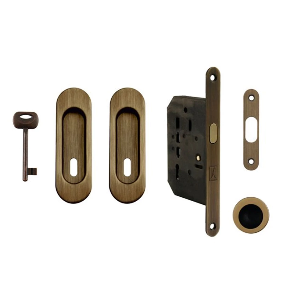 Made in Italy súrolt bronz ovál tolóajtó BB zár szett húzókával