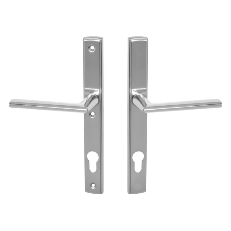 A Mantova egy keskenycímmel rendelkező bejárati ajtó kilincsgarnitúra mely rögzítési furatképe miatt szélesebb körben alkalmazható alternatíva az igényes bejárati ajtókra.