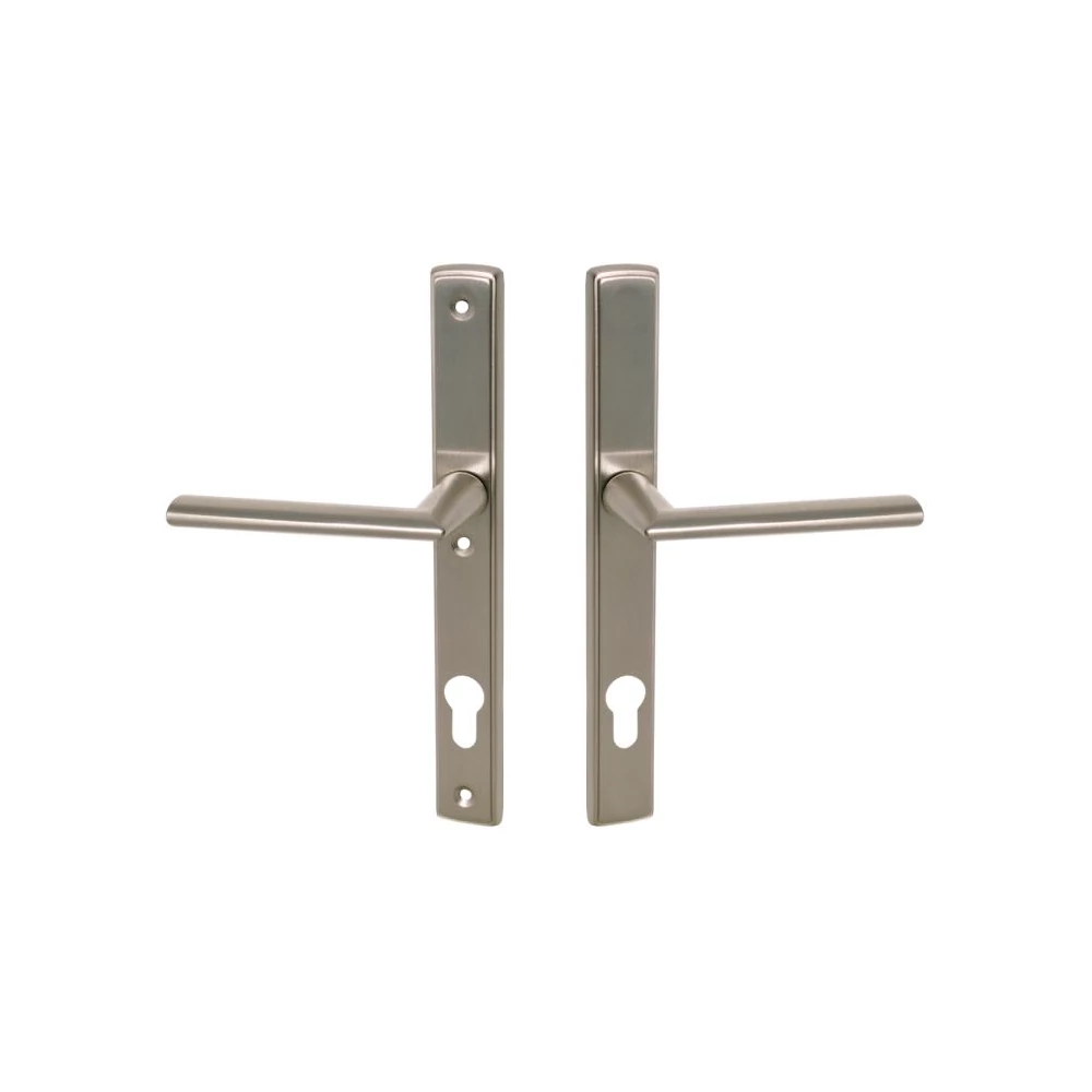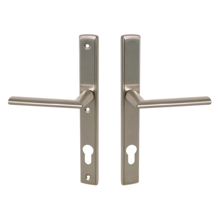 A Mantova egy keskenycímmel rendelkező bejárati ajtó kilincsgarnitúra mely rögzítési furatképe miatt szélesebb körben alkalmazható alternatíva az igényes bejárati ajtókra.