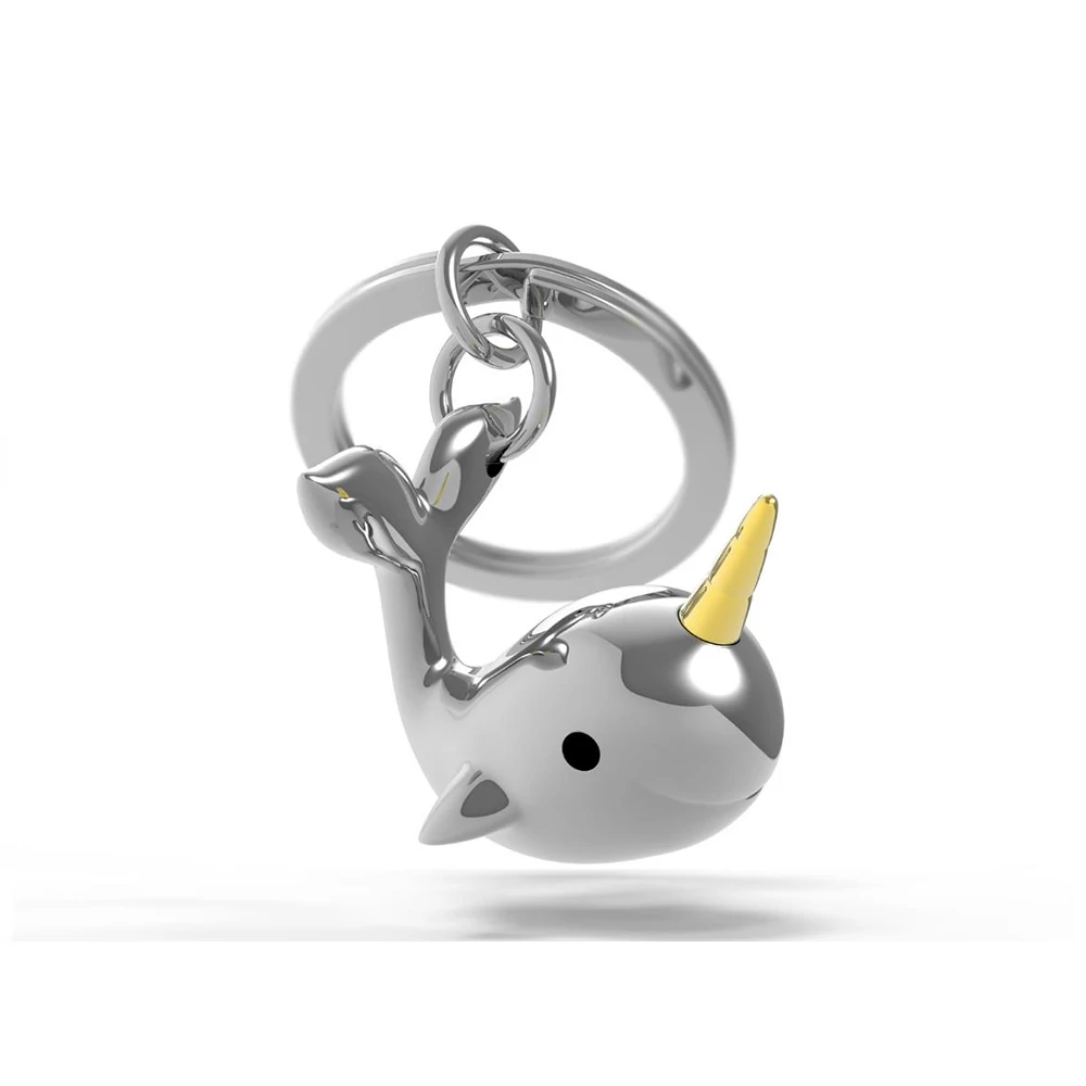 Metalmorphose fényes króm aranyszarvú bálna kulcstartó MTM122-01