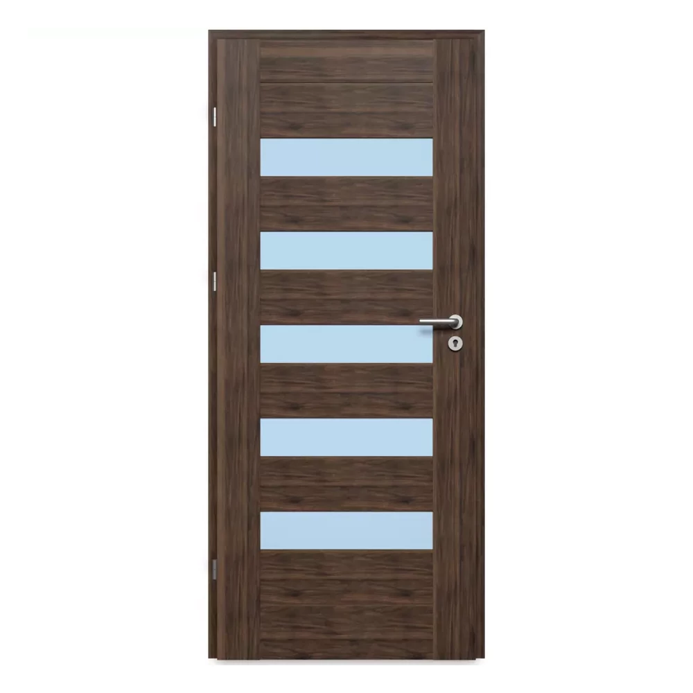 Sötét mogyoró 3D beltéri ajtó 750-as magyar szabvány méretben utólag szerelhető átfogótokkal 10-es falvastagsághoz.