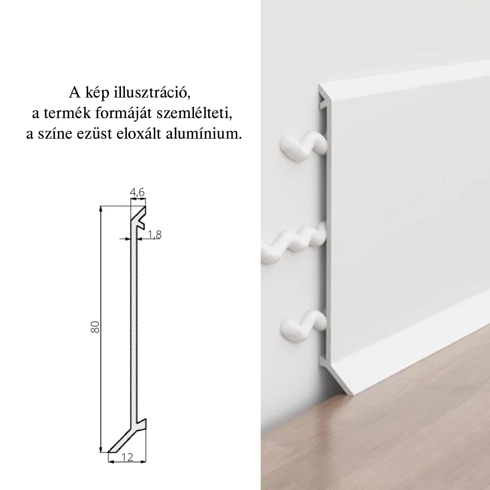 Pol-Skone alumínium lábazati szegély - ezüst eloxált alumínium