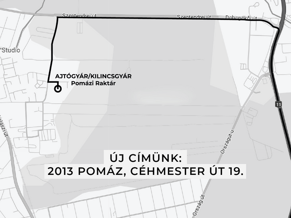 Új telephelyünk címe 2025. november 3‑tól: 2013 Pomáz, Céhmester út 19.