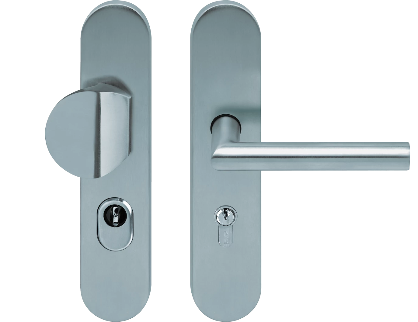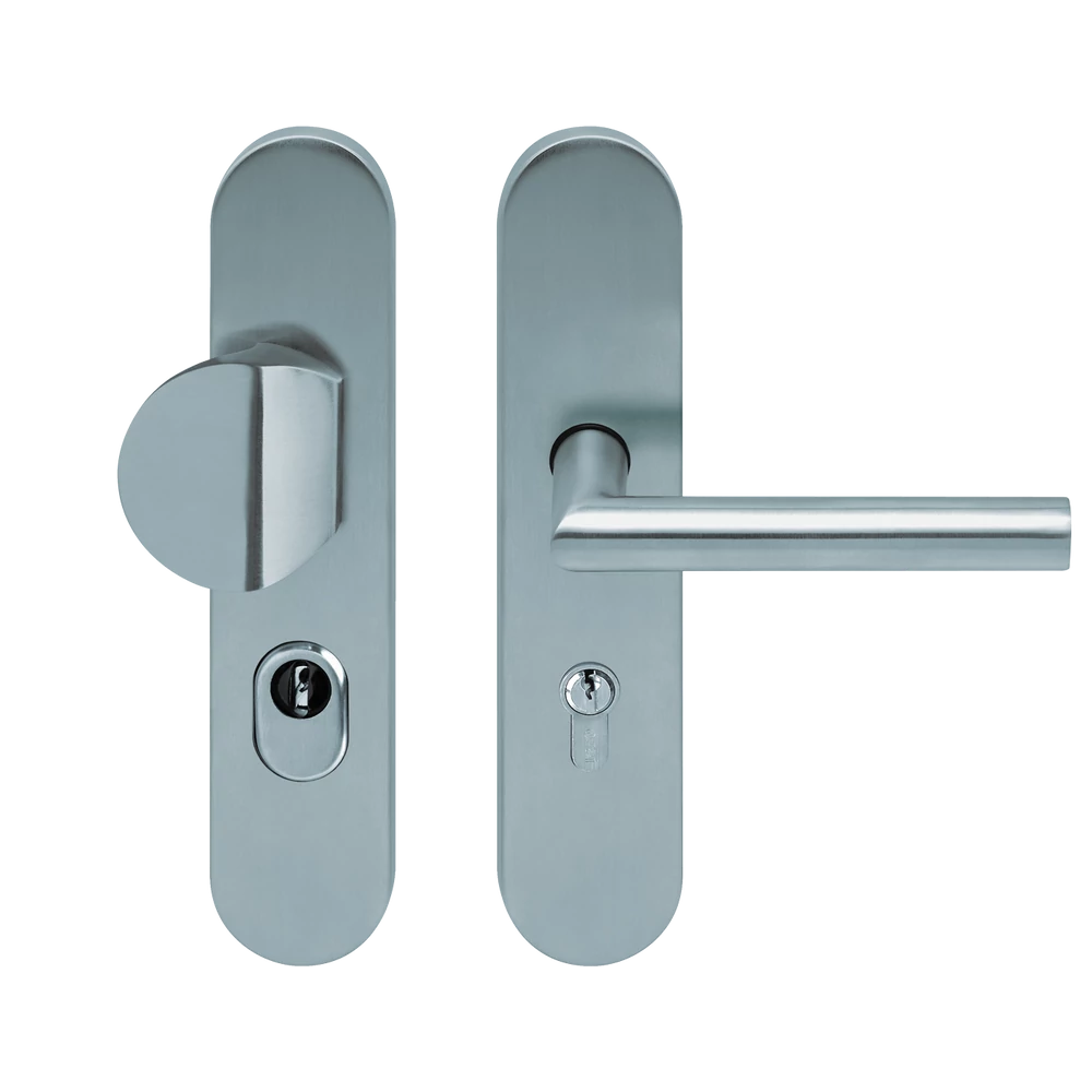 Scoop inox bejárati biztonsági thema cilindervédős gomb-kilincs garnitúra