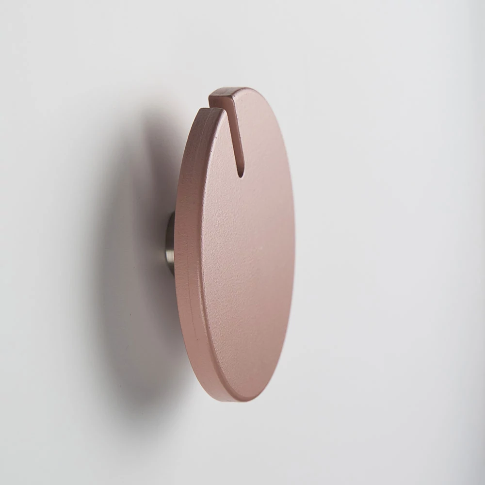 | Anyagok | Festett, lakkozott MDF, Farrow & Ball® (Sulking Room Pink Nr. 295 árnyalat) premium ECO festékkel színezve, rozsdamentes acél fali rögzítés |
