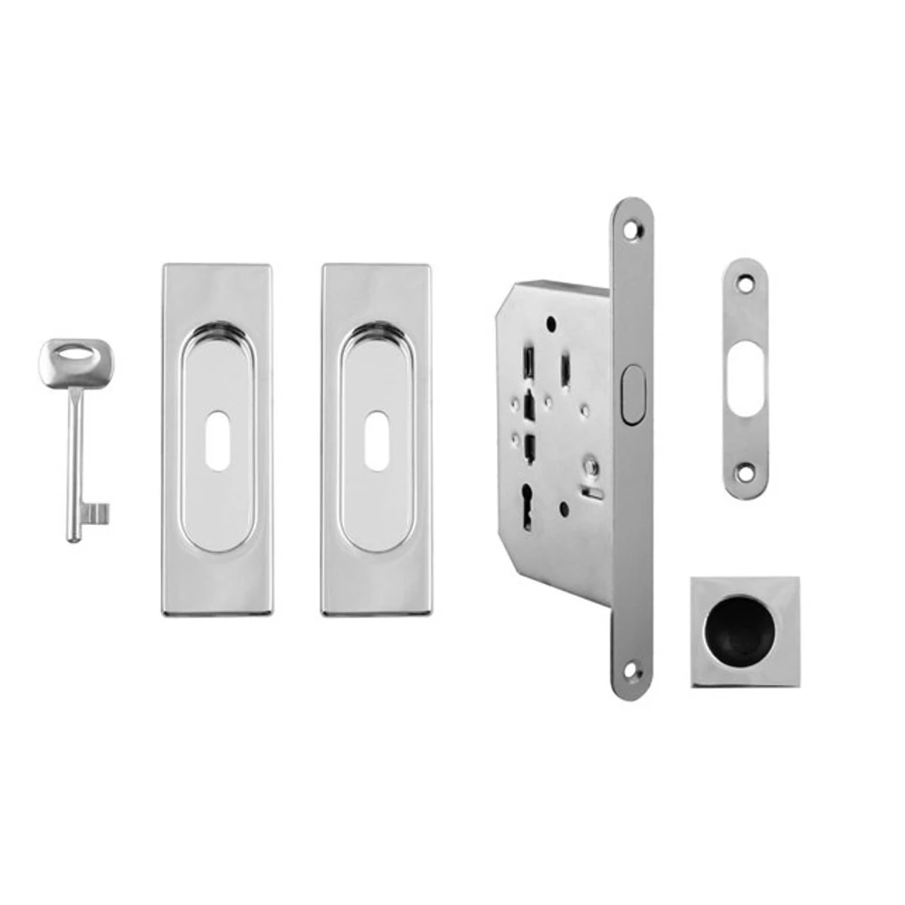 Made in Italy fényes króm négyzetes tolóajtó BB/S zár szett húzókával