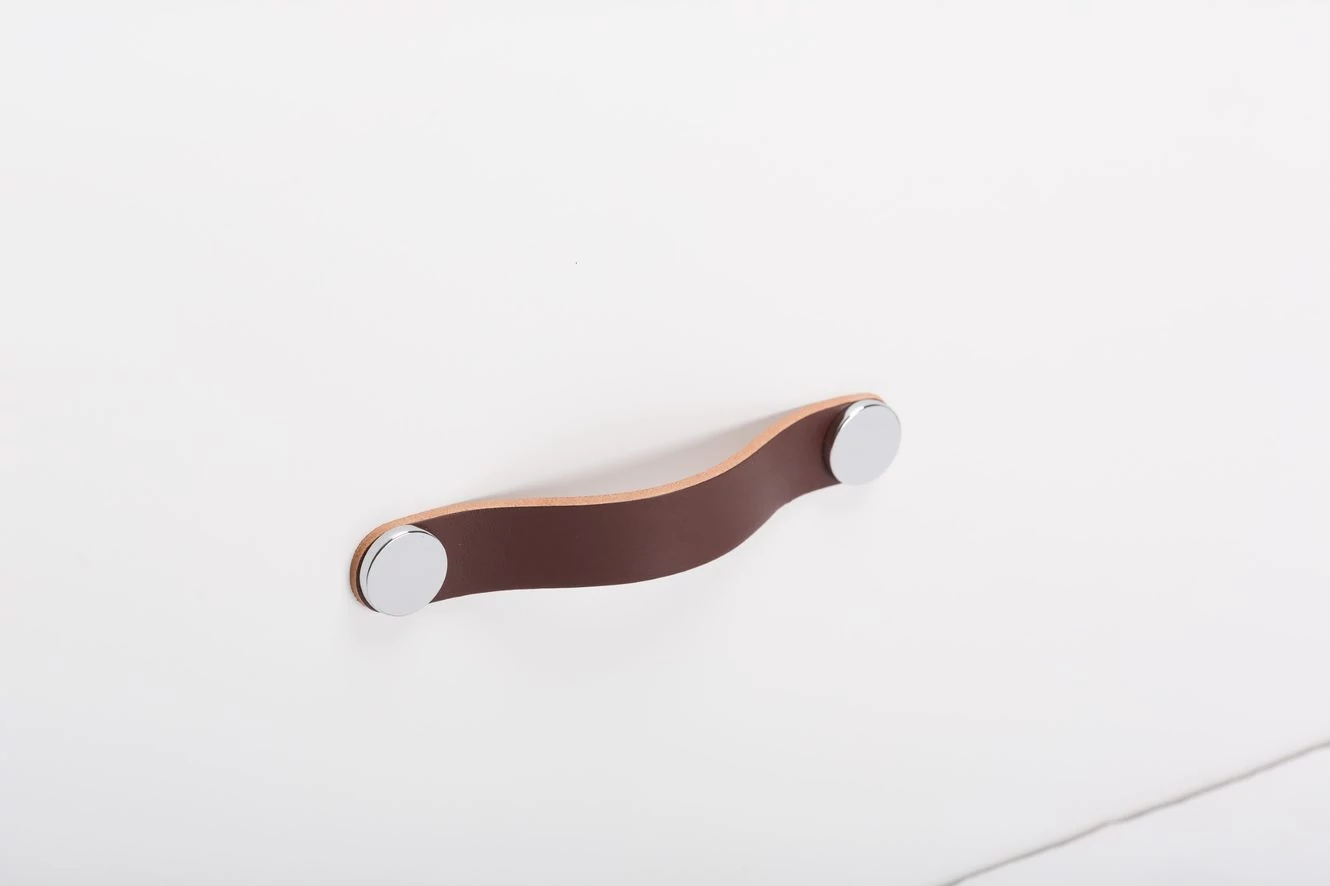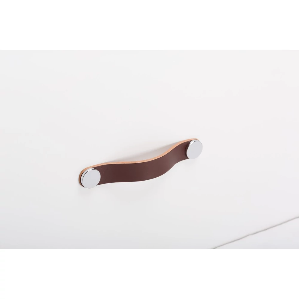 Viefe FLEXA fogantyú 128 mm, bőr-fém, barna bőr + fényes króm