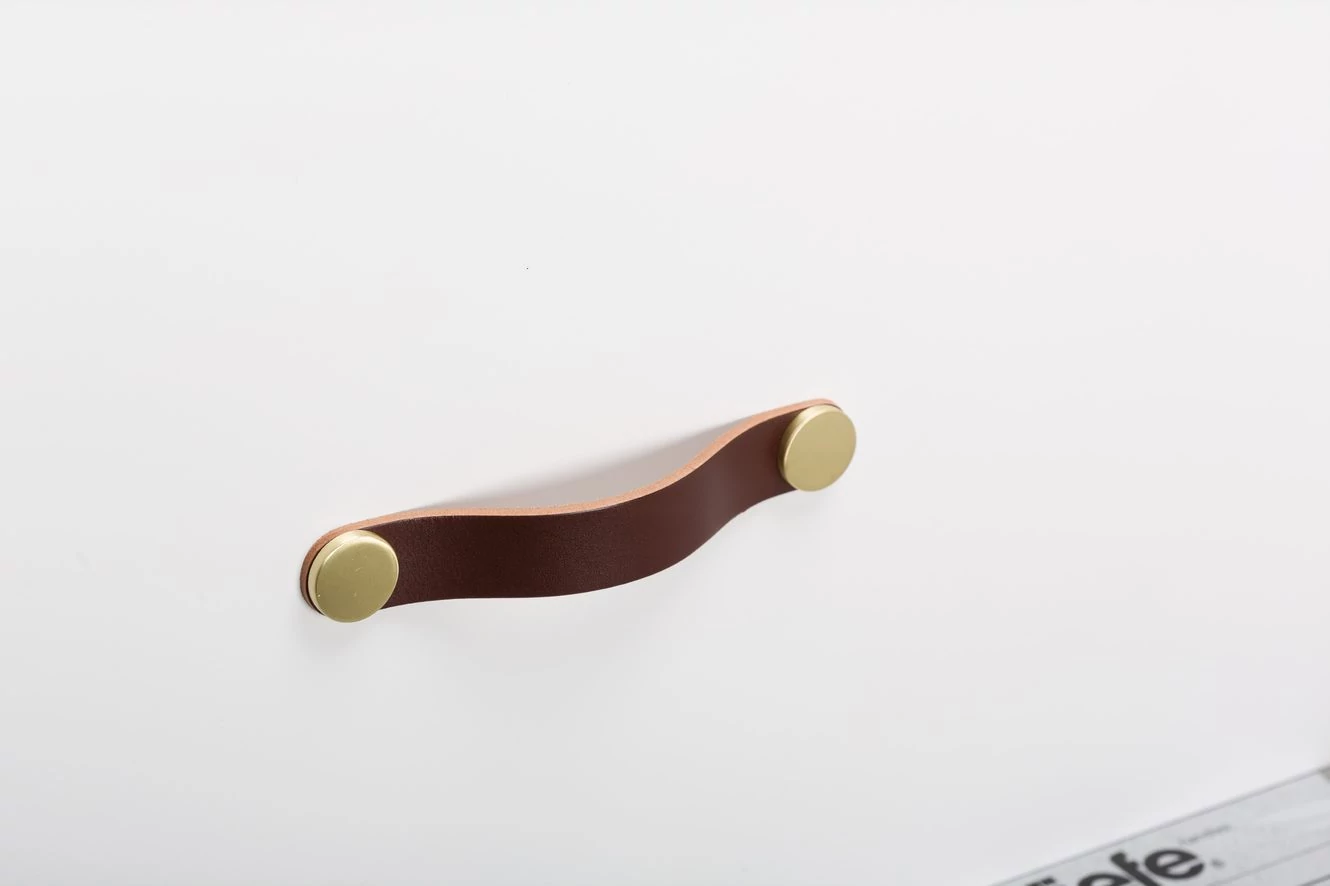 Viefe FLEXA fogantyú 128 mm, bőr-fém, barna bőr + sárgaréz