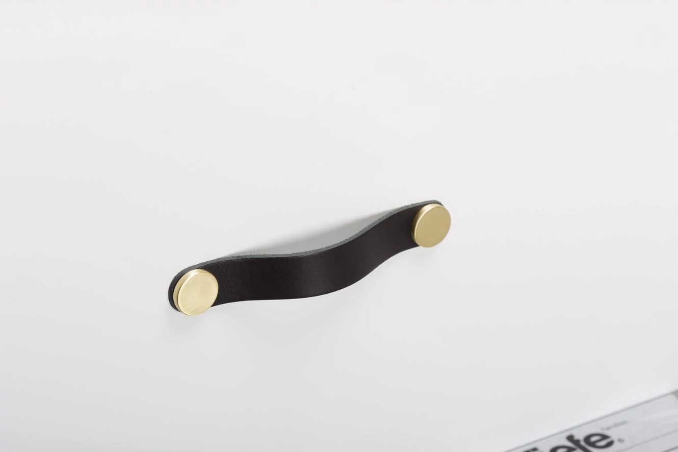 Viefe FLEXA fogantyú 128 mm, bőr-fém, fekete bőr + sárgaréz