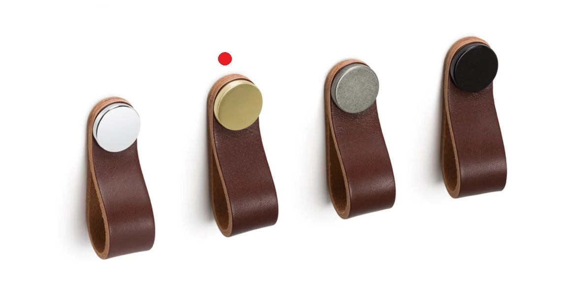 Viefe FLEXA fogantyú gomb, bőr-fém, barna bőr + sárgaréz